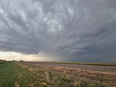 Intercepted a nice supercell just north of Sydney, CO. When I arrived the storm was inflow dominate. A little while later it became outflow dominate. You could see the hail core getting larger as I was standing there. Reports of 3 inch hail were being reported. As the storm became outflow dominate winds picked up to 40mph plus. As the hail core was getting closer I moved south towards Sydney. Stopped in a few locations for pictures. I proceeded east in I-80. Again, stopping for pictures when able.